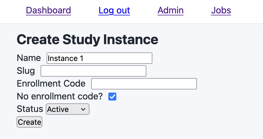 Now that you’ve published your study and created an instance for it, you can click on the Dashboard link and see the new instance listed there.