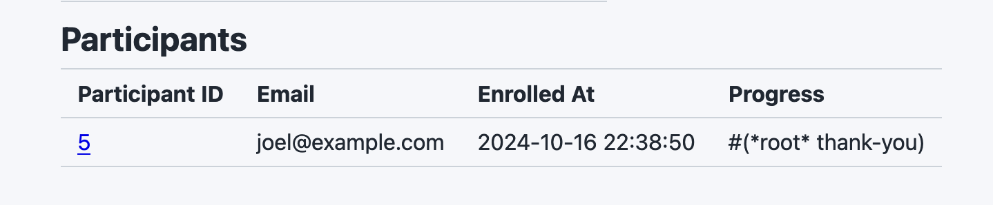 The number under the Participant ID column is a link — go ahead and click on it. You’ll see a detailed listing of your responses to the study: